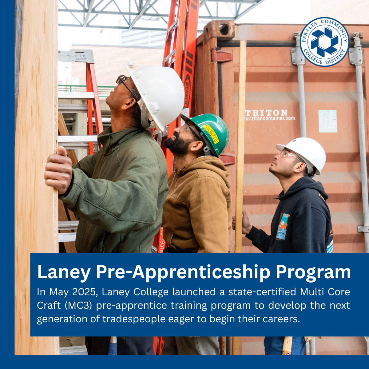 The PLA coordinates workforce participation through building and construction trades pathways, established systems, and state-recognized training programs, including the Laney College Multi-Craft Core Curriculum (MC3) program established in 2025. Local workforce development organizations play an important role in supporting apprenticeship readiness and construction career pathways.